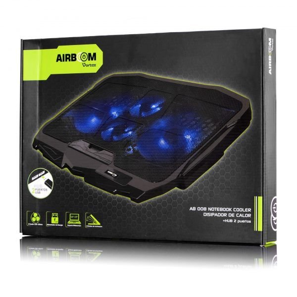 Ventilación de 4 Coolers LED: 2 Cooler LED Azul de 125 mm y 2 Coolers LED de 70 mm, Para Una Mejor Refrigeración de la Notebook. | ||||